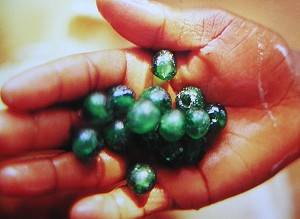 Washing and Polishing After the beads have cooled off, they need to be washed and polished. This is done in a watery solution of washing powder and sand. The bead-maker rubs and abrades the fresh beads until their surface is free of impurities. After this last polishing, the beads are left to dry in the sun before they are strung on cotton threads. Depending on the size of the beads, 30 to 50 beads are strung together.
