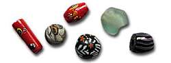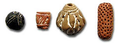 Beads of Clay and Porcelain: With the advent of pottery, clay beads became popular. Apart from elaborately decorated African clay beads, hand-painted clay and ceramic beads from China and Peru are also famous. The Greeks covered clay beads with glazes to which they added metal oxides, causing the beads to shine in bright colours. Wooden Beads: They belong to the oldest beads in the world. Beads made from this easily processed material come in all polished and non-polished forms. Precious hand-painted beads come mainly from India. China perfected filigree carving which makes each bead to a unique piece of art. Amber: This fossilized resin was formed about 40 to 120 million years ago from secretions of "injured" trees. Cut and polished or left in a natural state, these beads have a high value. Copal, a younger form of Amber, has also been used in the creation of jewellery for centuries.  Shell and Coral Beads: Nature has already given shells and corals colour and decoration. In the late Neolithic period, holes were bored into shells which were then strung together in necklaces. Corals grow in warm, shallow waters. Due