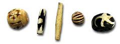 to their hardness, people like carving or polishing them. But even in their natural state they do not fail to fascinate. Genuine Pearls: The sea gives us wild, or real pearls. They grow in oysters when a foreign body such as a grain of sand has crept in. The oyster secretes mother-of-pearl (calcium carbonate) in layers around the grain of sand. Today, this type of pearl is also cultivated. Horn, Bone and Ivory Beads: These represent the oldest materials used in the making of jewellery. Horn and bone, in particular that of hoofed animals as well as ivory from mammoths and elephants, have always been used as jewellery. Often, coffee and tea were used as natural dyes.